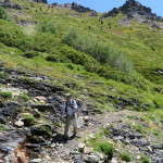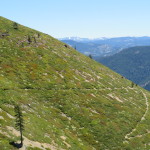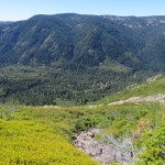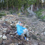 We get a ride from Lila’s husband, to the trail after having breakfast at the Red Moose. We are on the trail at 0820. We immediately start our climb but much to our pleasant surprise it is in the shade of the forest. The grade is steady but not overbearing and we hike for 1.5 hours before taking our first break. We have gone 3.2 miles and are at an elevation of 5900 feet. Pretty good since we started at 4585 feet.