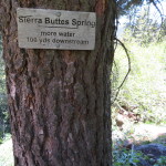 We are in the shade of a tree which is probably holding the piece of mountain above us down with its roots. We finally make it over the hump and descend slightly to Sierra Butte Spring which is running well. We get water right from the source and decide to cook dinner for lunch. We have a pasta side of garlic shells and add pouched chicken to it. Together with the very good ice cold spring water, it makes a great meal stop. While packing up, two Australians that we saw in town yesterday pull up. They were hitching to a place called Downieville to see a doctor. Apparently Goz has got some kind of excema on his hands so now they are all taped up. The doctors did not know what caused it. Goz and his wife Snowy are from Australia. He is German by birth (hence the name Goz, German Australian) and she is from Wales. Very nice couple and we exchange information with them.