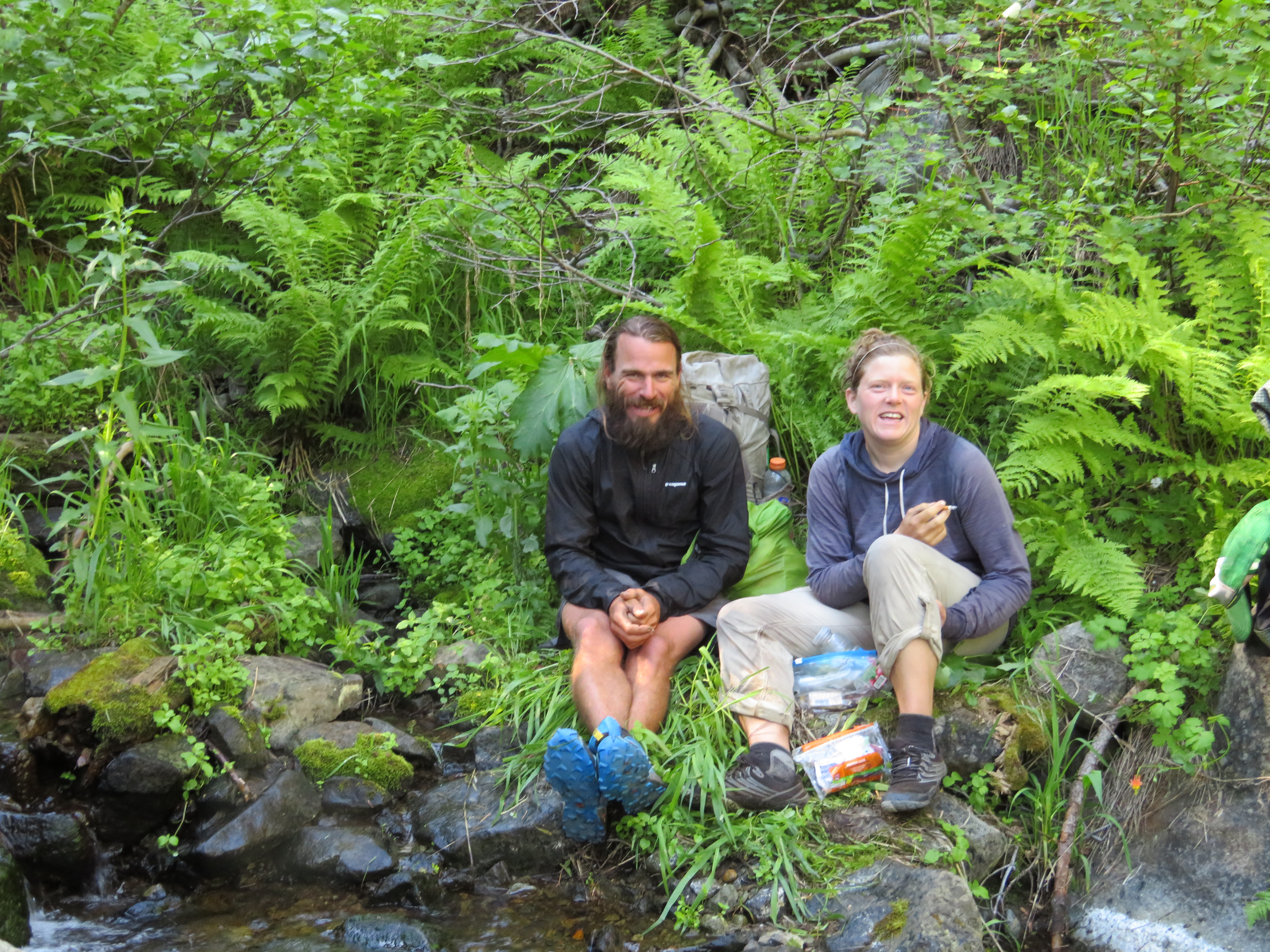 We slept pretty good last night. More Pop tarts and away we go, leaving camp at 0750. My body is just plain rebelling and I feel very sluggish today, especially on the uphill’s. About two miles in, a hiker carrying a small pack goes running by us. Shortly thereafter a girl runs by. When we reach Bear Trap Creek, they are there getting water. We stop for water too and chat while we filter and drink.