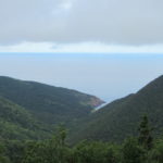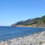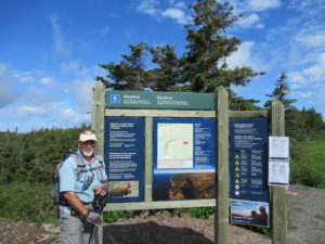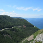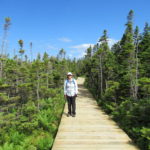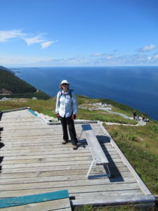 The park has built a boardwalk of steps going down the spine of the mountain here. The views of the Cabot Trail Road below, the surrounding cliffs and steep terrain, as well as the coastline are phenomenal. We sit on a bench and take it all in and take some pictures as well. Then it is time to climb the 300 or more steps back to the top. Once there, we continue on the loop trail. The views are still nice and then we turn back inland towards the Trail Head. We meet a very nice couple from Edmonton and we end up talking to them for over a half hour. During the course of the conversation, they say they have a hard time lately keeping up with the goings on in their country. This is because our politics in America is like a soap opera drama. Who is saying what about who, Russians, etc. We are being noticed for the lack of respect our leaders of both parties are showing the world. A sad commentary. Enough about that.