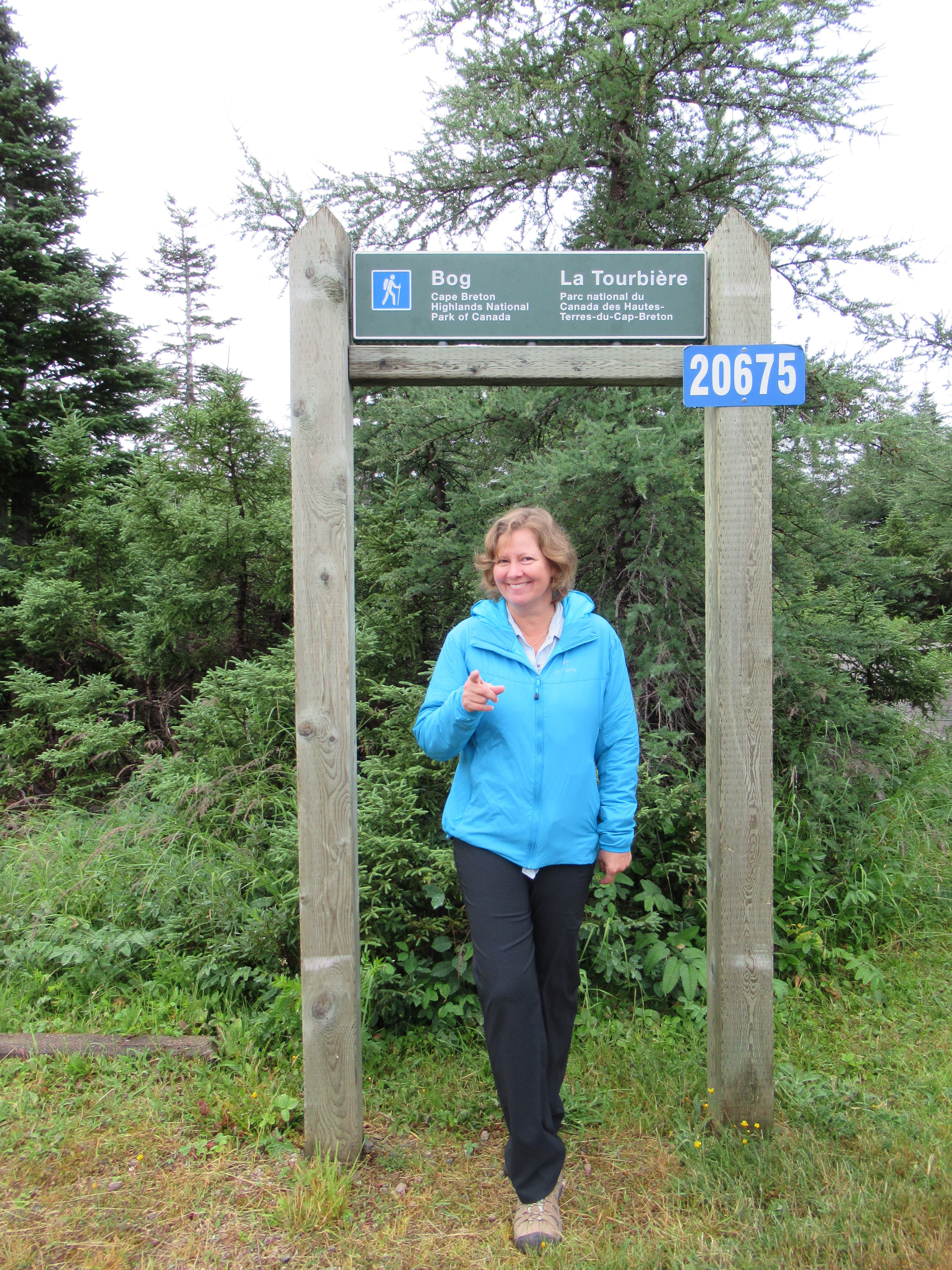 We drive along the Cabot Trail and notice there are no construction workers today as it is Saturday. We stop at the Bog Trail and get out to do the short boardwalk loop. I was going to say something about bogs and New Jersey but a certain party I am with senses this and stops me before I get started. The hike is nice and we learn a few more things. We get to see some pitcher plants which would be man eaters if the human species were the size of bugs. Like the more famous Venus Flytrap, the pitcher plants are carnivorous, getting their nutrients from insects rather than the poor boggy soil. When we get back to the parking lot, two cars pull up. A guy gets out of one and says he is surprised that they are not working on the roads as there is only a 3 month window here in which to do the work. A lady from the other car says, this is Canada and we are socialists which means no overtime which means no work on Saturday. Pretty funny.