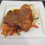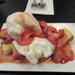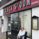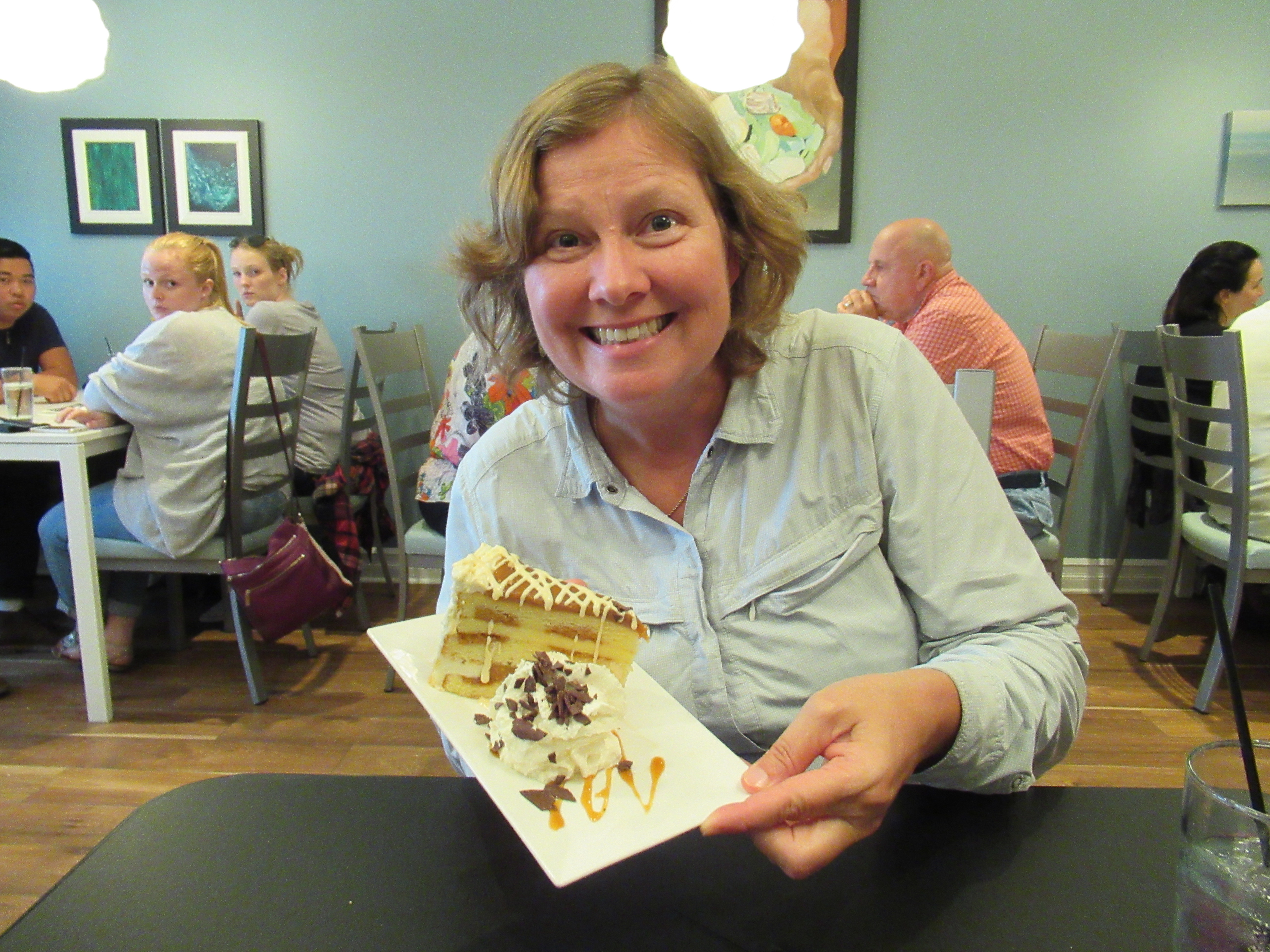 We have a 20 minute wait for our table at the Black Spoon Bistro. I had scoped this out on trip advisor and the menu looked great. We got seated and then had the difficult task of choosing an entrée. Every item on the menu sounded good and interesting. We started with an appetizer of Spring Rolls with a maple curry glaze. So good. The entrees we chose were Bacon Wrapped Scallops Carbonara for Charlie and Coconut Curry Chicken for Carol. Both are amazing. Carol wants dessert as she has eyed a salted caramel cake with butter cream frosting. I opt for the peppered strawberries in Benedictine on pound cake with ice cream. We have been doing well with watching our calorie intake each day but tonight we definitely lost the battle.