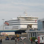 Totally satisfied, we head over to the Ferry. It is around 8:15 and we get our boarding passes and park in the assigned lane. We inquire about a reserved seat for Carol but there is still none available. When we booked the night ferry, all the cabins were taken. Next they have a reserved seating area with reclining chairs but only one was left. We have been calling per their instructions to try and get a second one for Carol.