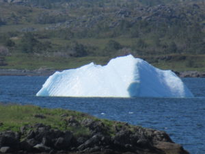 Today is mostly a driving day as we head back to Gros Mornes National Park and the community of Trout River. We have seen the word community a lot on the signs here in Newfoundland. I like it as it gives you a feeling of kindred ship right off the bat. We see an iceberg for the last time on way out of town. Something I forgot to mention yesterday is that we have been seeing a lot of road side gardens. We learned that when they put in the paved roads here, people figured out that the soil they dug up by the sides of the road was softer and rich. At your home, it was hard to dig in the peat and if you were closer to the water the wind and cooler breeze made it harder to grow vegetables. The dug up soil by the road and the fact that it was a bit more in land made for a perfect garden scenario. Locals have made use of this by planting and tending gardens all along the road.