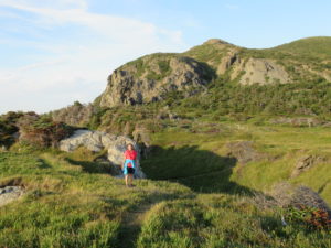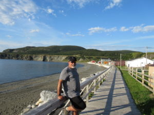 From there we are back on the road south towards the park. It is a beautiful day and we enjoy the coastline drive to Rocky Harbour. We stop here to eat at the food truck we had found our first day and sit outside with another great meal of pan fried cod and chips. After dinner we go on our way again towards Trout River. But first we have to make it through the construction area. We came up on a Sunday so they weren’t working but today is different. The delay is minimal and we stop to stretch our legs and do a short hike to Southeast Brook Falls. This is the first hike that we have not liked. The trail was pleasant enough but the placement of the overlooks to the falls sucked. You get to see a small cascade and then it drops into the valley below. It is probably a 100 feet or more but you can’t see any of it from this angle. There are no other trails through the thick brush to give you a better view so we turn around in disappointment. After the falls, we make a turn towards Trout River and a whole new area of the park. It is here that we will explore the famous tablelands and do a few other hikes.