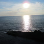 We take the short ride to town and walk the boardwalk for about .75 miles and then walk to the trailhead to the point. There are about 100 or more steps going up the cliffside before the trail may level out. We start up, needing to burn off some of the chips we had for dinner. After driving all day it feels good to walk and we make the climb with some huffing and puffing. Once on top the trail levels out and we are treated to views of the small town along the waterfront. We come to the point after about a mile or so and get some great pictures of the area. We are glad we came up here as we start back. We are also treated to the sun reflecting off the water making a close to wonderful day. Time to rest up for the day ahead tomorrow.